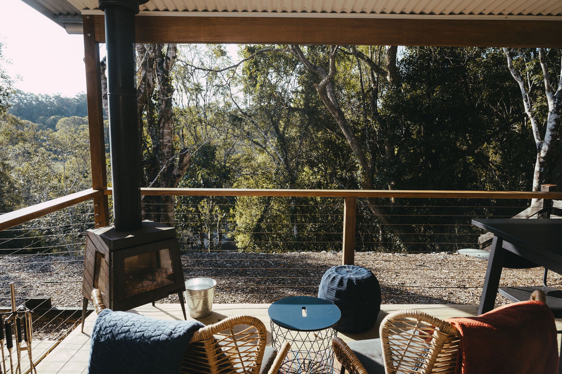 Our Bangalow Suite is a contemporary, art-filled, semi-detached yet fully self-contained guest suite, boasting breathtaking views of the forest and river below.